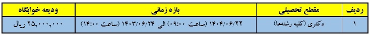 5- جدول زمانی ثبت درخواست و تکمیل مراحل ثبتنام به شرح ذیل میباشد.